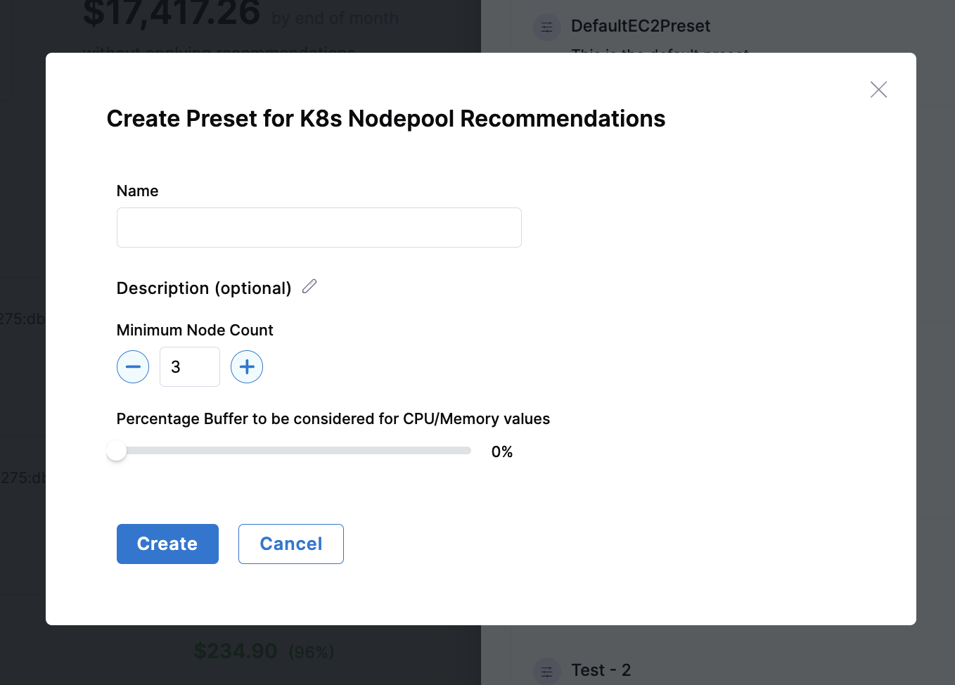 This helps users to create and save customized configurations for their recommendations. These presets capture specific user preferences, such as tuning parameters for resource types like workloads, nodepools, ECS, and EC2 instances.