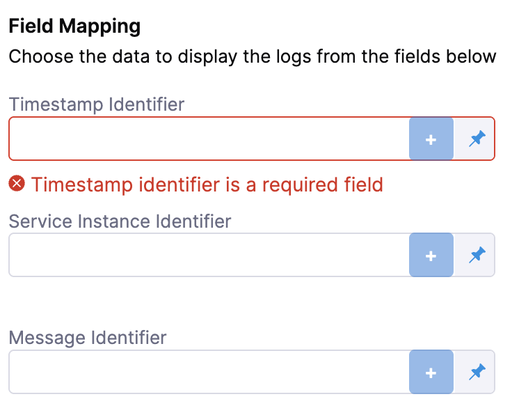 Next, complete the field mapping for the Timestamp Identifier, Service Instance Identifier, and Message Identifier. To do so, hit the