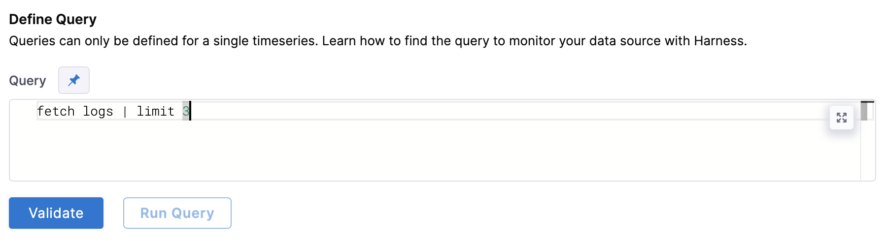 After writing your fixed input query, click Validate to ensure your query is valid.