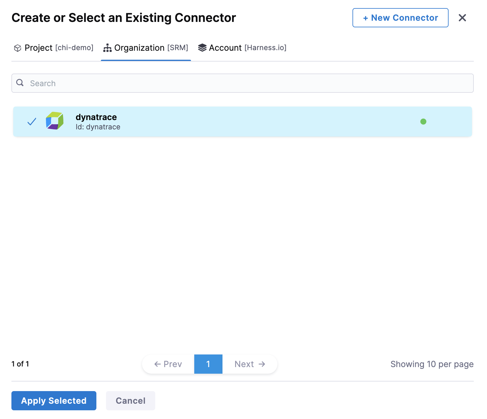 For more information on configuring Dynatrace connectors, go to Add Dynatrace connector.