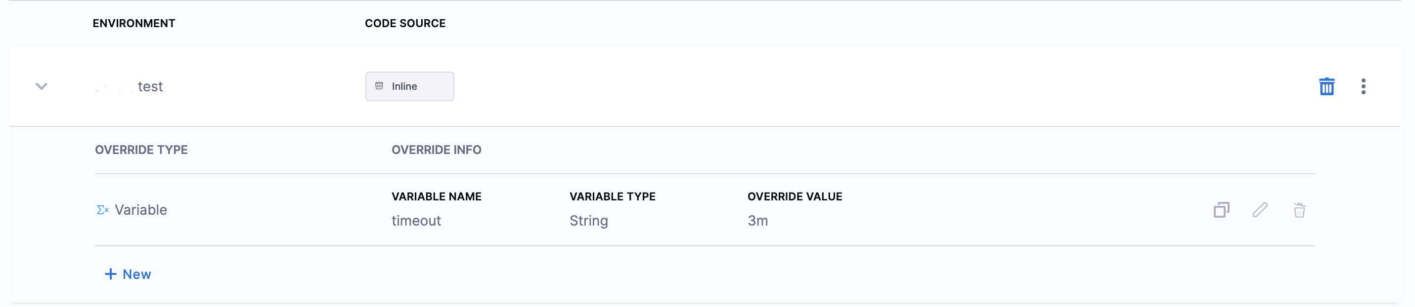 - Click New Override to create a new configuration under the desired scope.