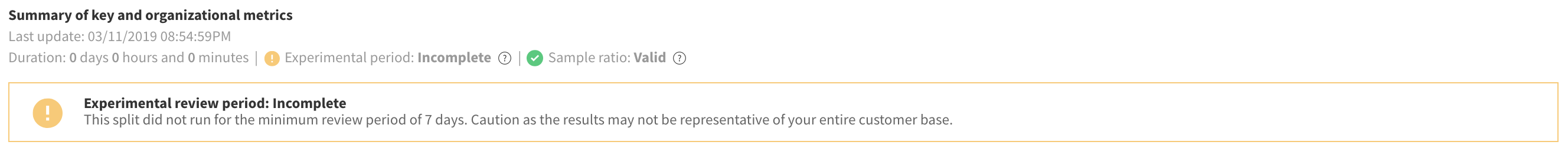 Making conclusions about your metrics impact during set review periods reduces the chance of errors and allows you to account for seasonality in your data. Split always shows your current metrics impact and if your review period has been reached.