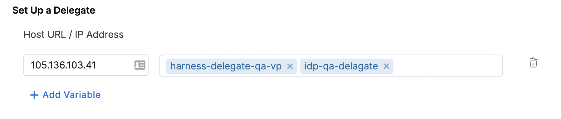 After adding the host, you can select one or more delegates that have access to the host. If you leave the delegate selectors field empty, it is assumed that all delegates in the account have access to the host/cluster.