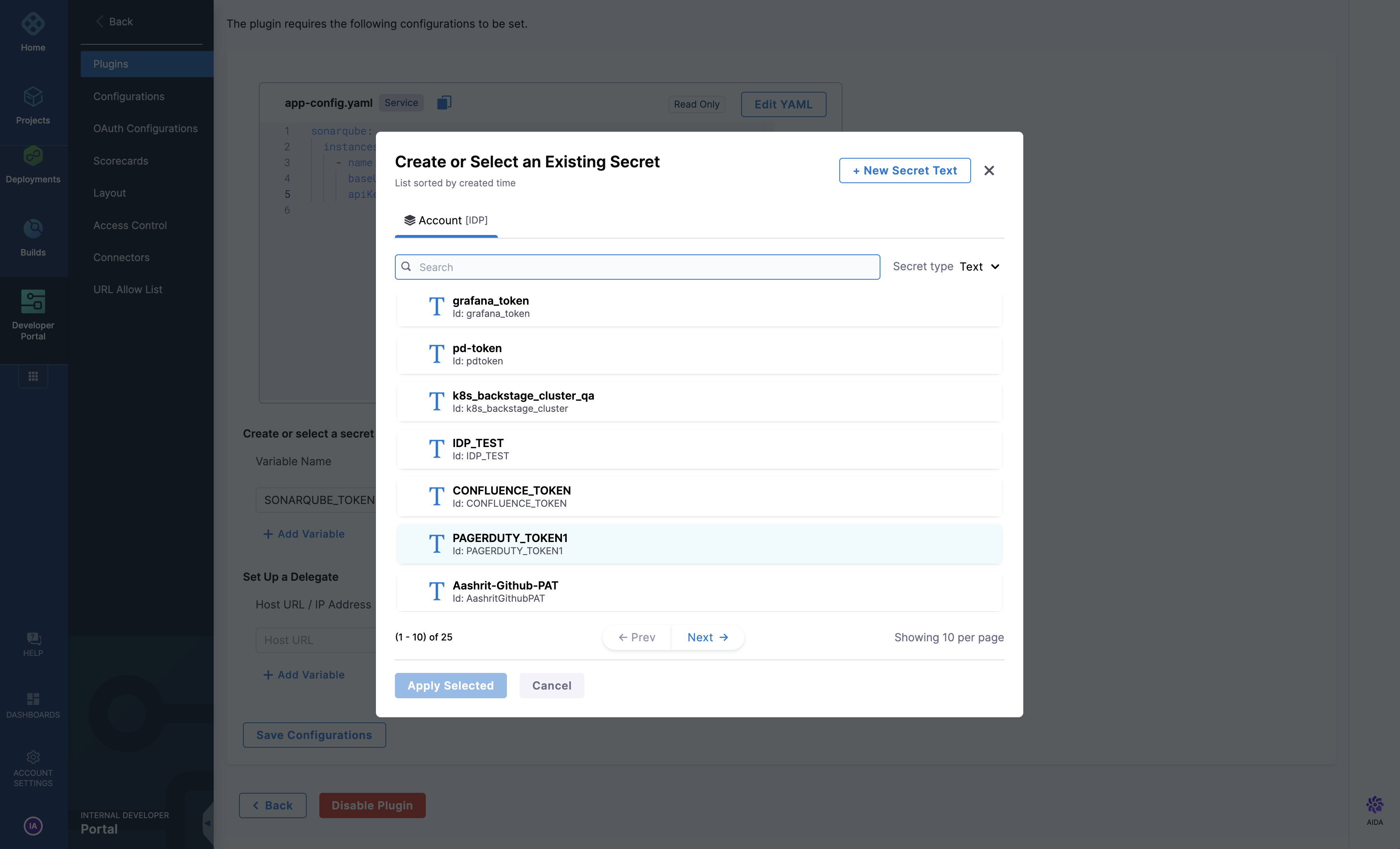 • Create secret in Harness to store API token, click on “New Secret Text” and enter values to your Sysdig Secure API Token to set SYSDIG_SECURE_TOKEN as shown below.