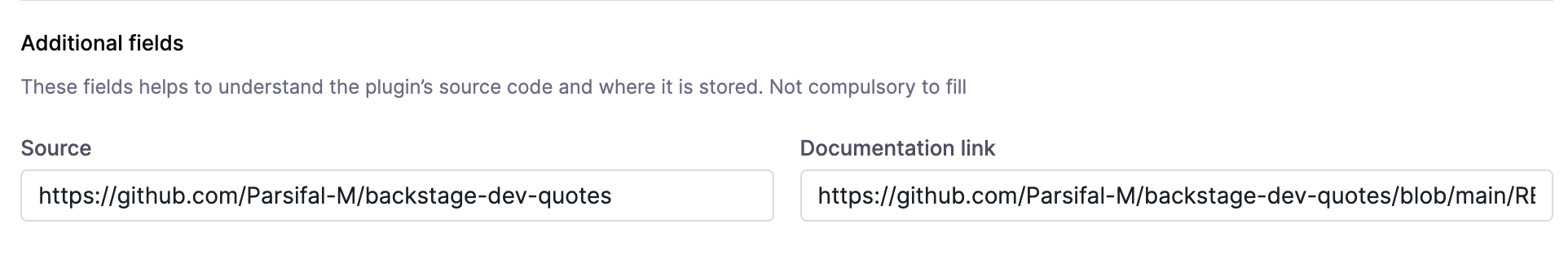 package.jsonfile. Make sure the name is exactly similar to what's mentioned in thepackage.jsonincluding@, e.g.:@parsifal-m/plugin-dev-quotes-homepage - Description : Add an apt description for your plugin, especially the function of the plugin.