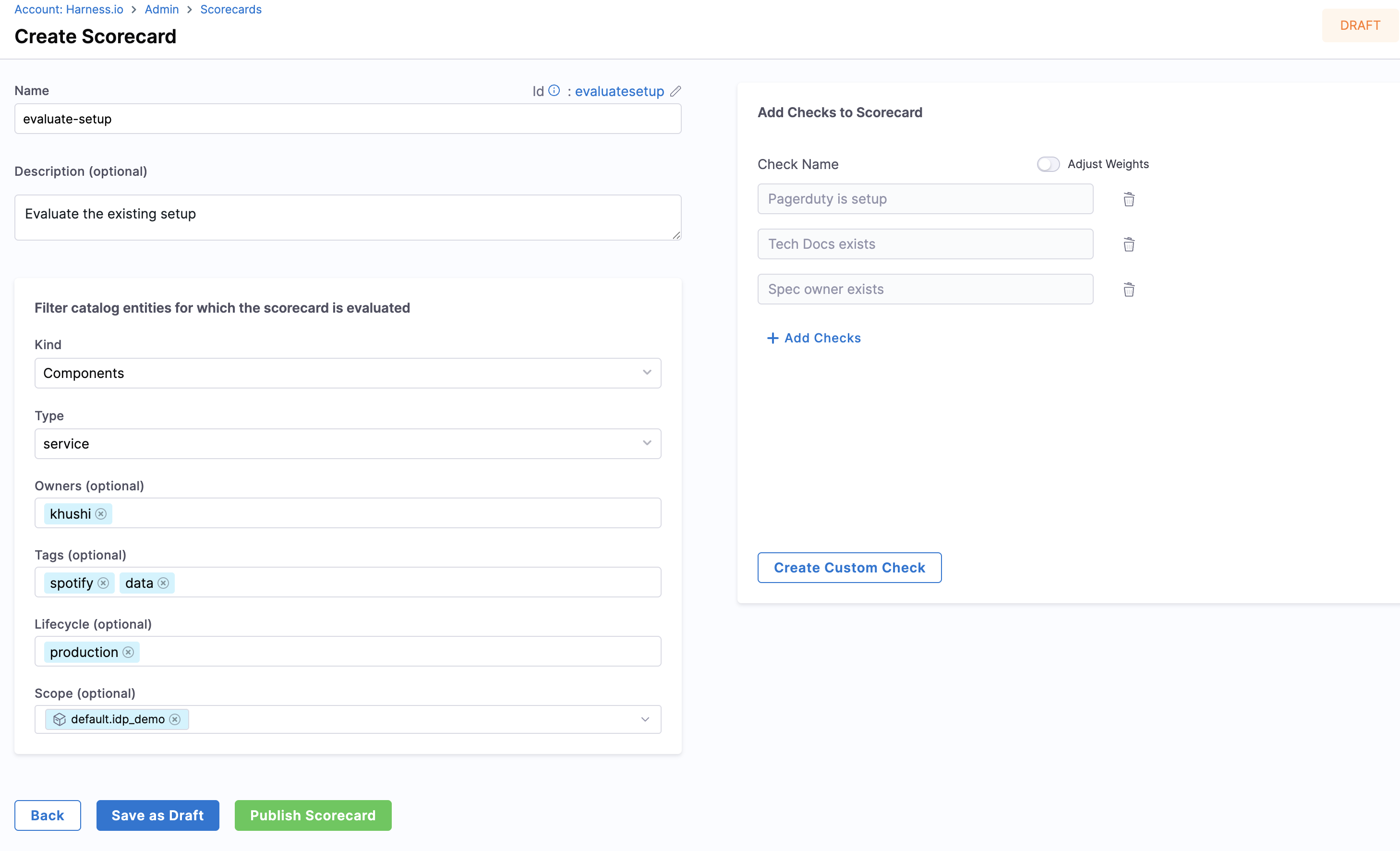Before you create a Scorecard, ensure that you have created some checks. To learn more about checks, go to Scorecard Checks.