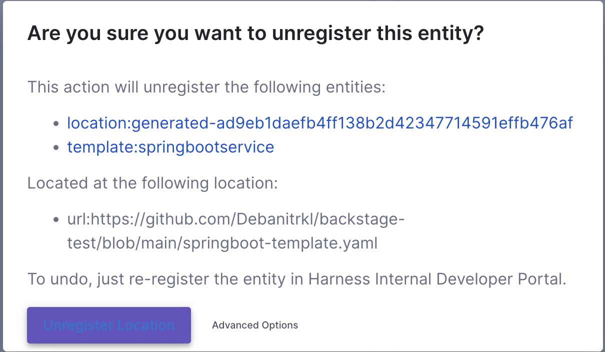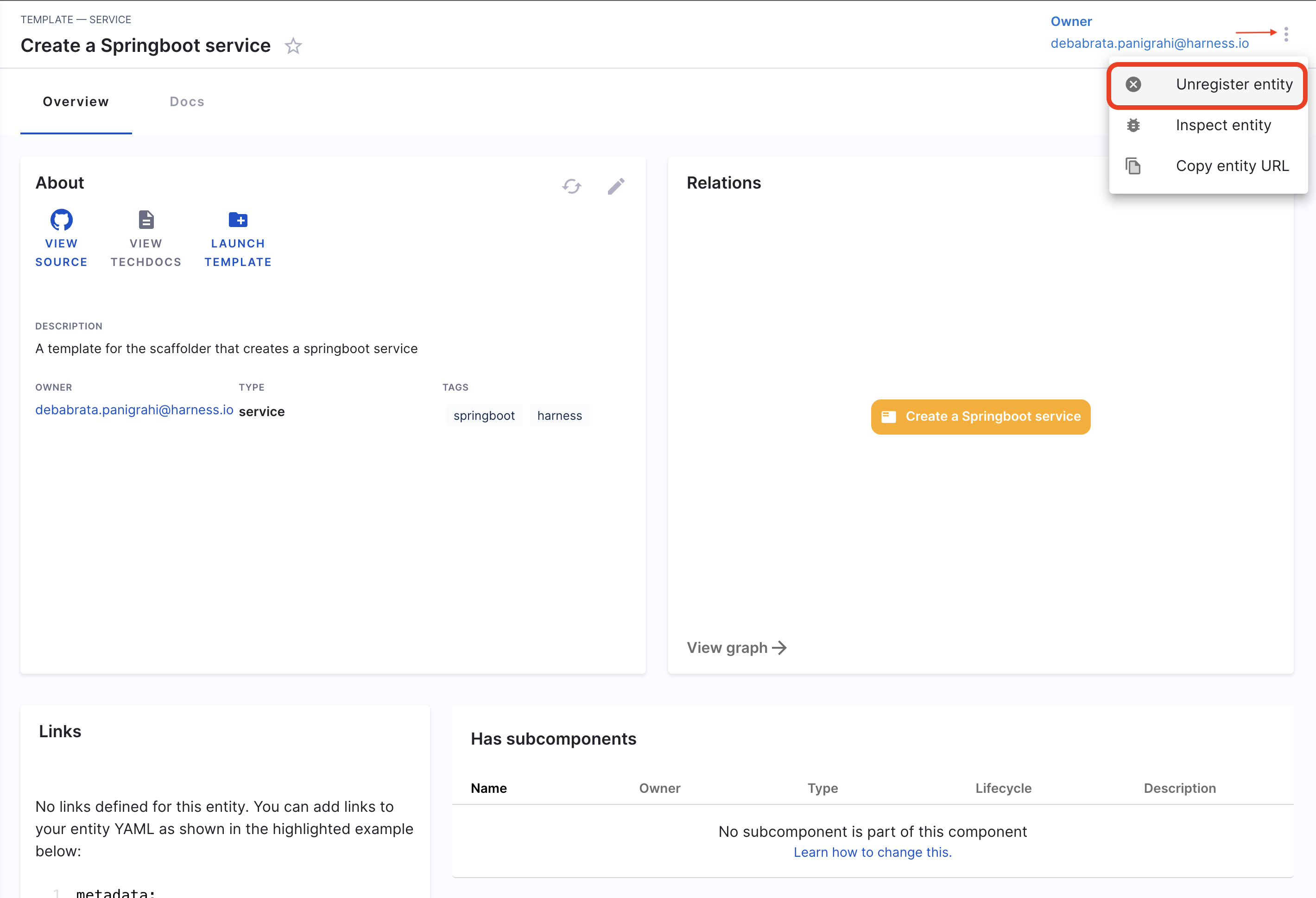- Now on the Template overview page, click on the 3 dots on top right corner and select Unregister Entity.
