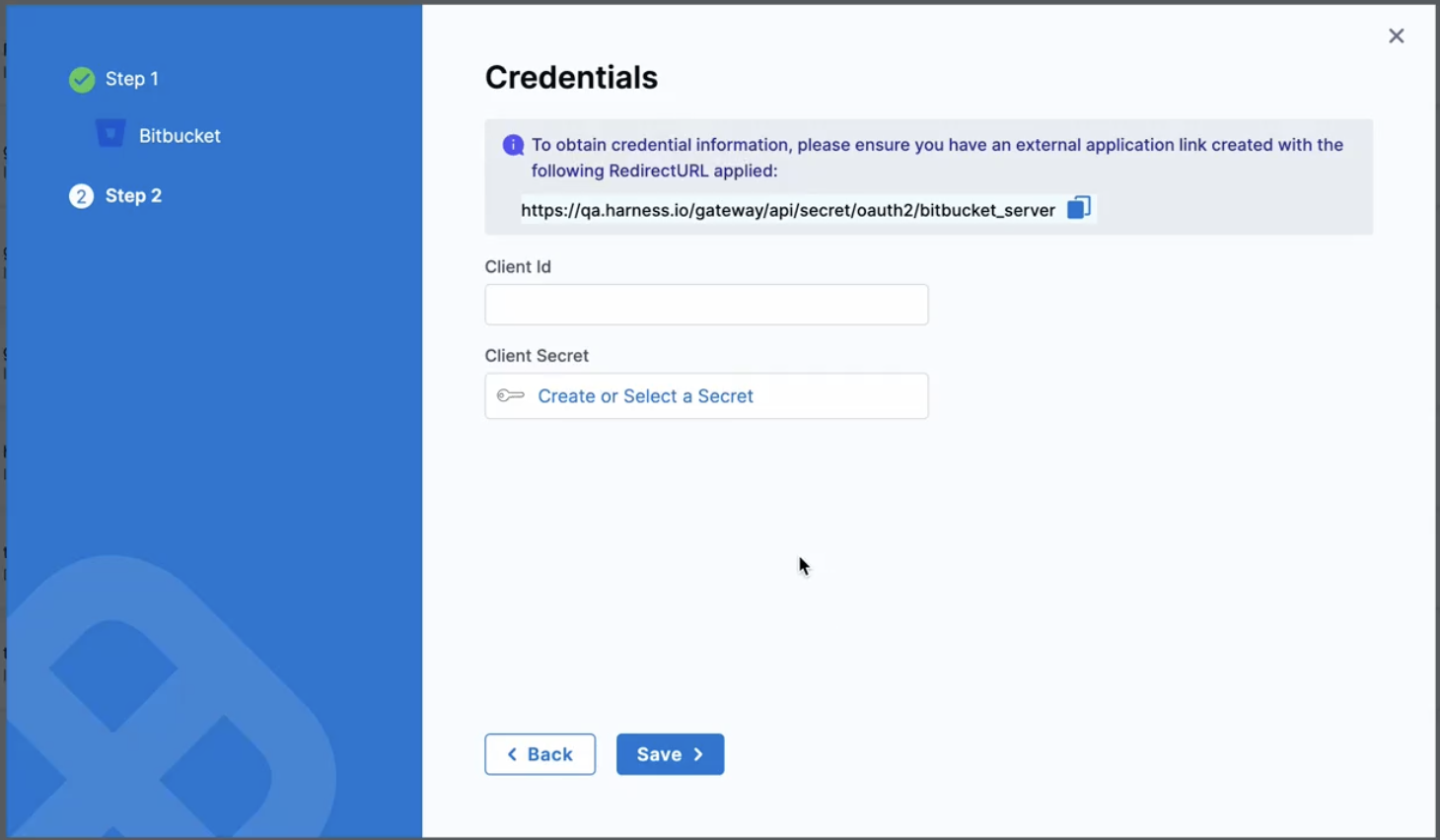 Copy the Redirect URL provided on the Harness Credentials page.