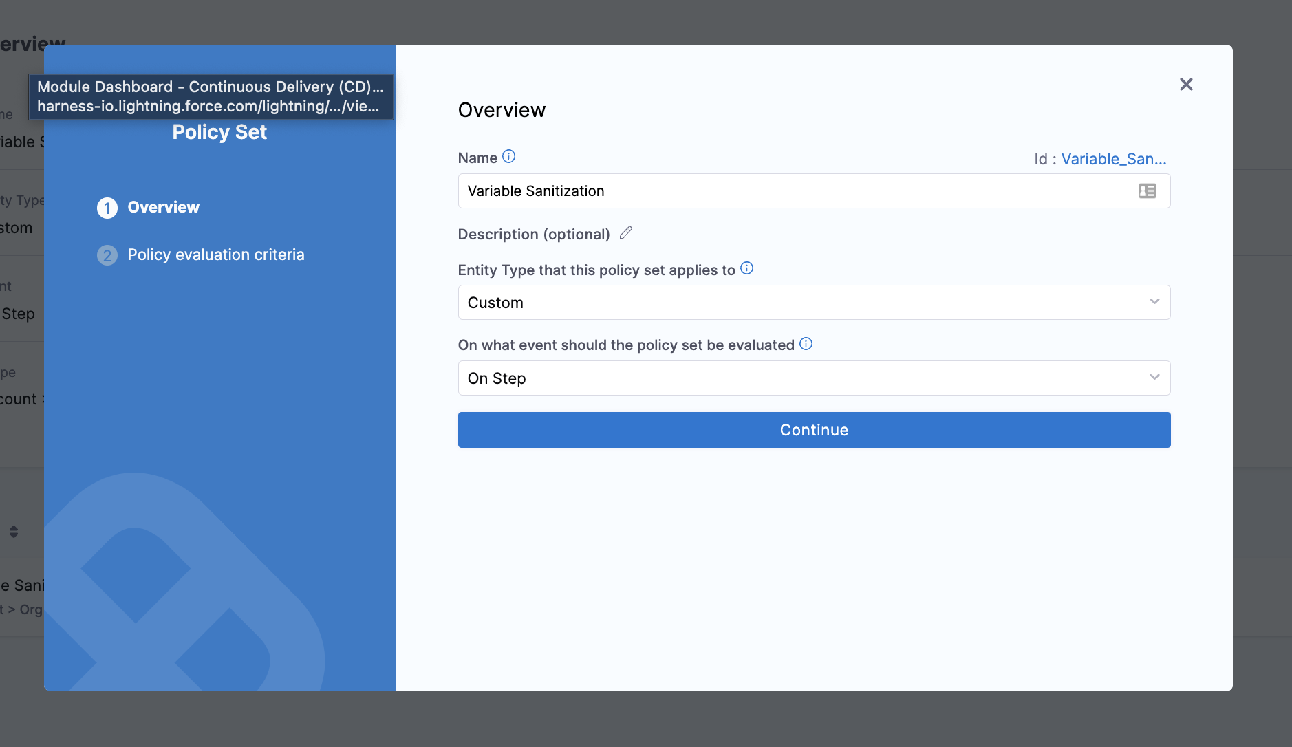 • On what event should the policy set be evaluated: On Step