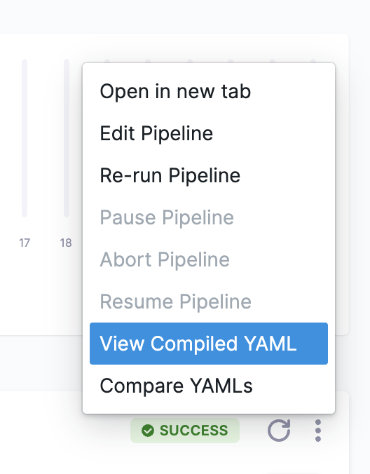 Locate the execution that you want to inspect, select More Options (⋮), and then select View Compiled YAML.