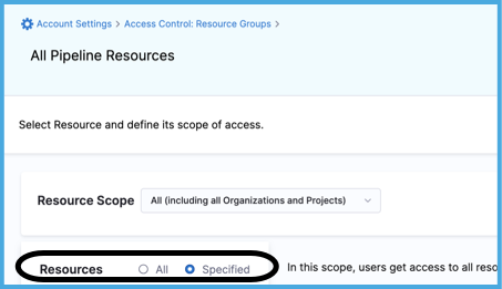 - Specified: Select specific, named resources in this category that are within the Resource Scope, such as specific pipelines.