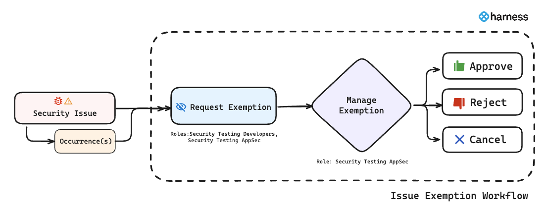 • Managing Exemptions(Approve/Reject): Security teams review exemption requests and choose to approve or reject. Refer to Manage Issue Exemption.