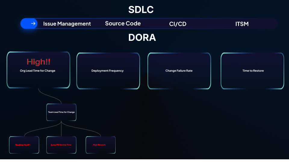 While DORA metrics are a great starting point for measuring your team’s performance, they don’t tell the whole story. DORA highlights issues like long lead times or high failure rates, but it doesn’t reveal the root causes behind these results.