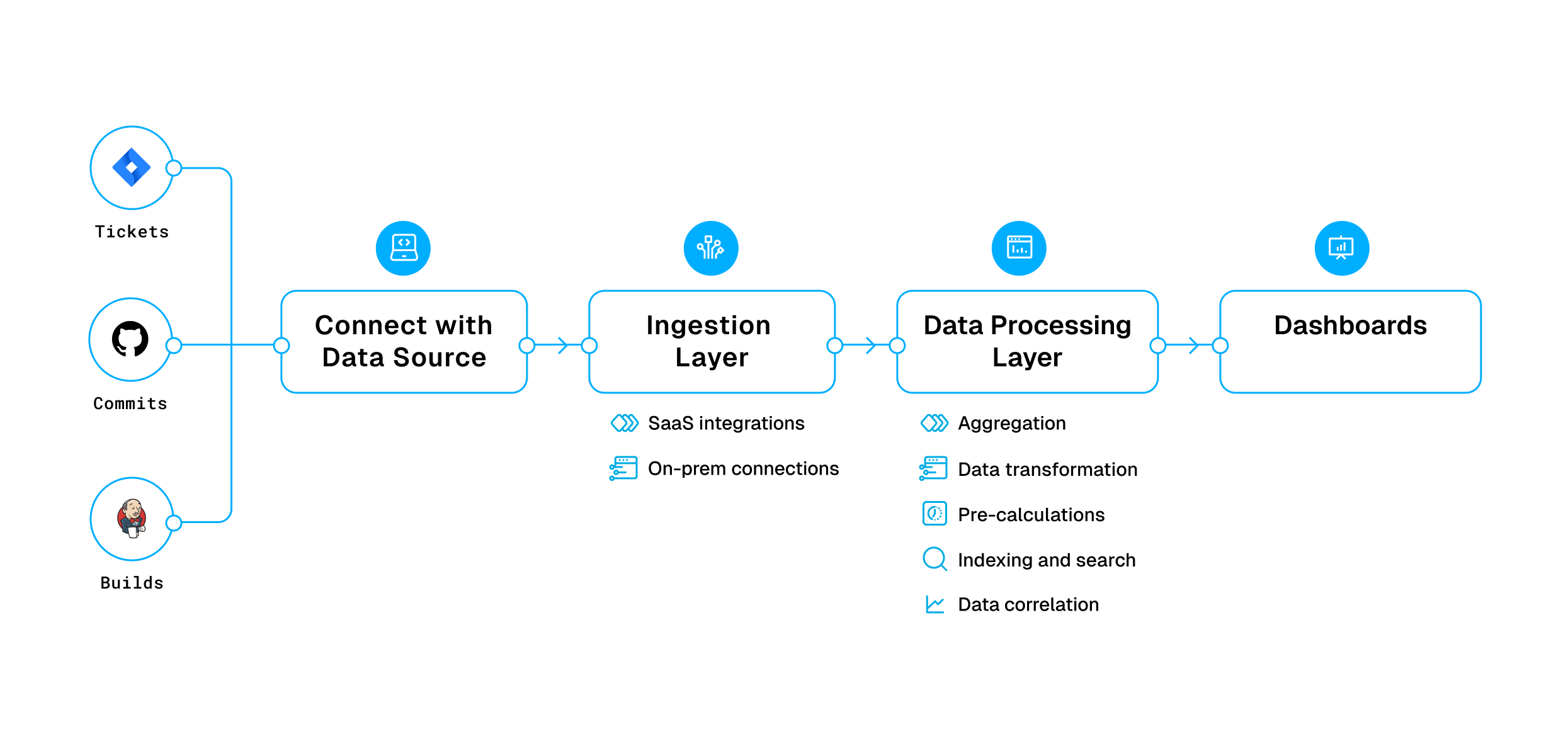 The SEI ingestion layer acts as a data magnet, collecting information from every tool you use across your software development lifecycle. This process occurs through two primary methods: