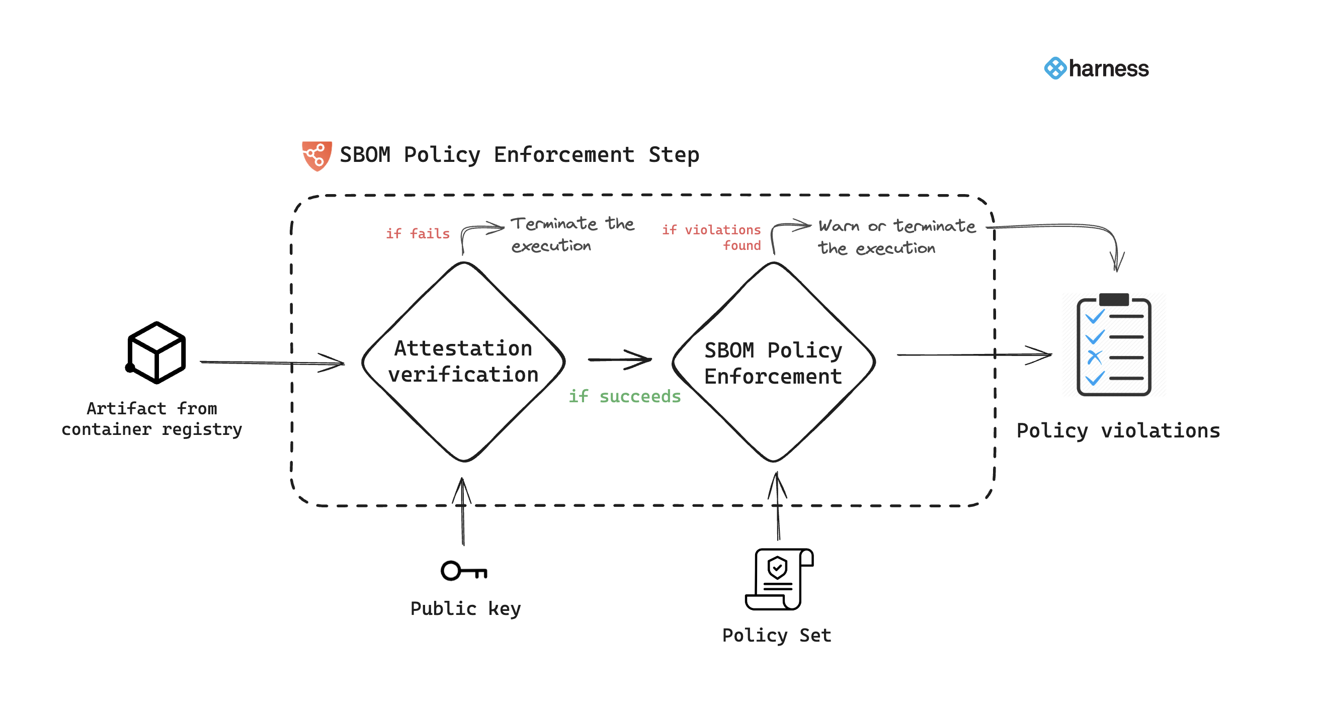 - A Harness file secret containing the public key from the key pair used to sign and attest the SBOM.