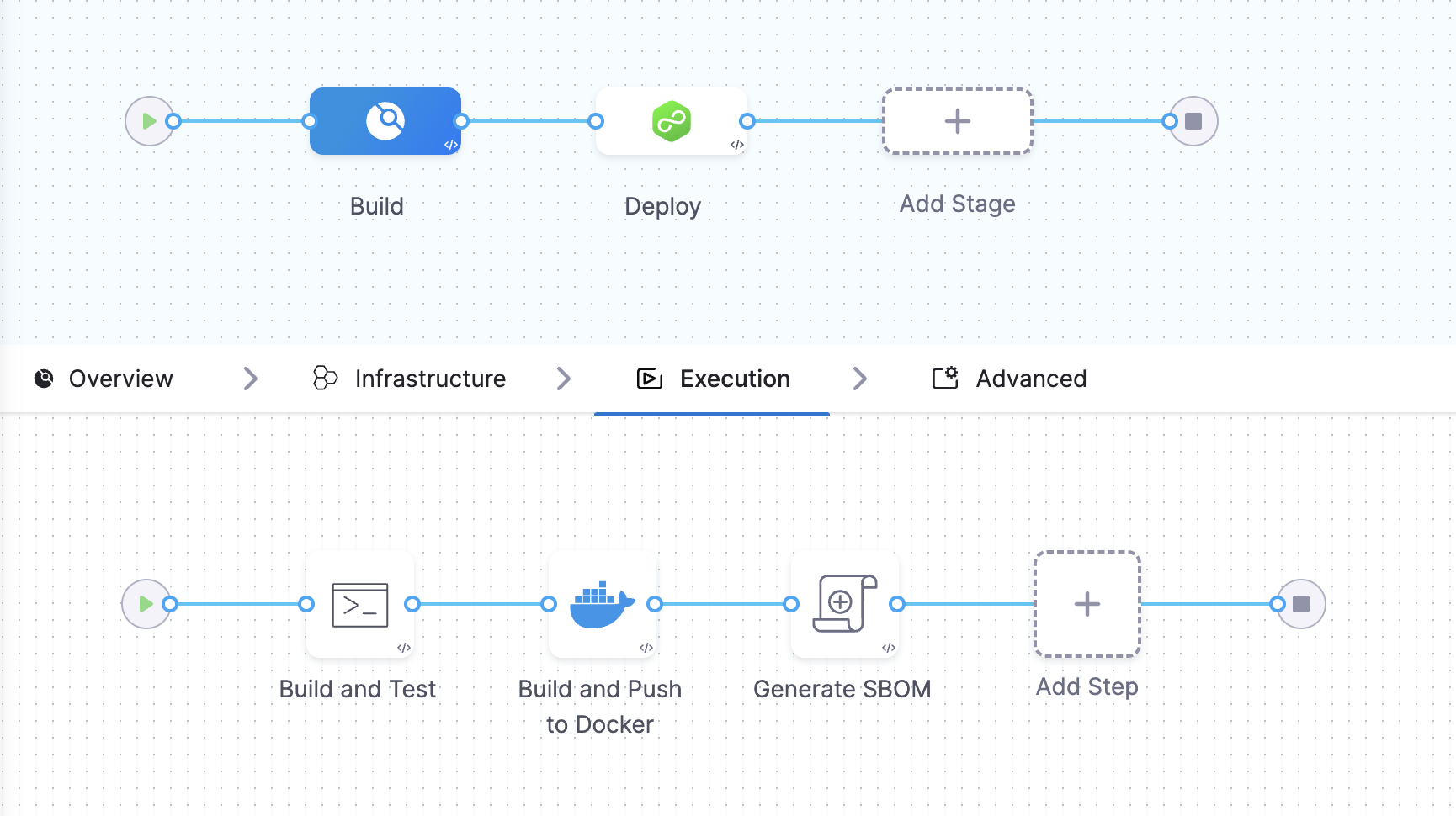 - In a Build stage, add the SBOM Orchestration step after the artifact (image) has been pushed to an artifact repository.
