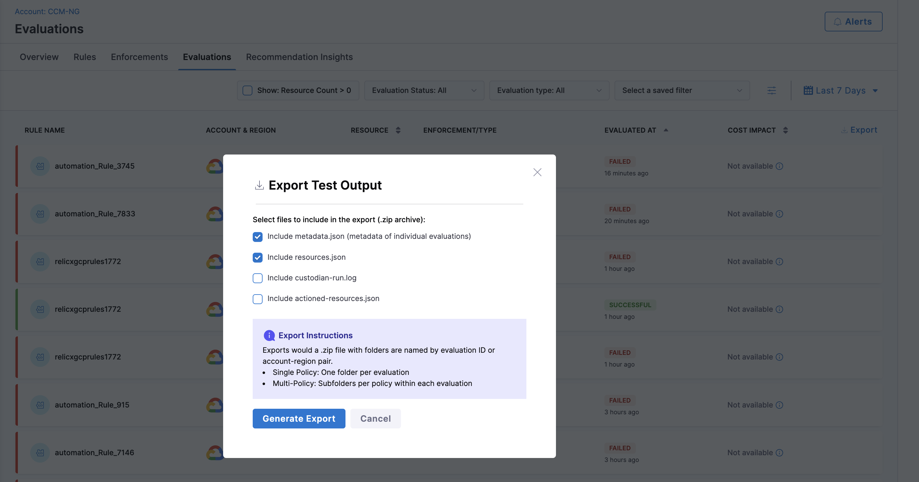 Enhanced Governance Exports: Extended CSV export functionality for Governance recommendations to include Action Type and Evaluated At columns, providing more comprehensive compliance reporting. [CCM-26912]