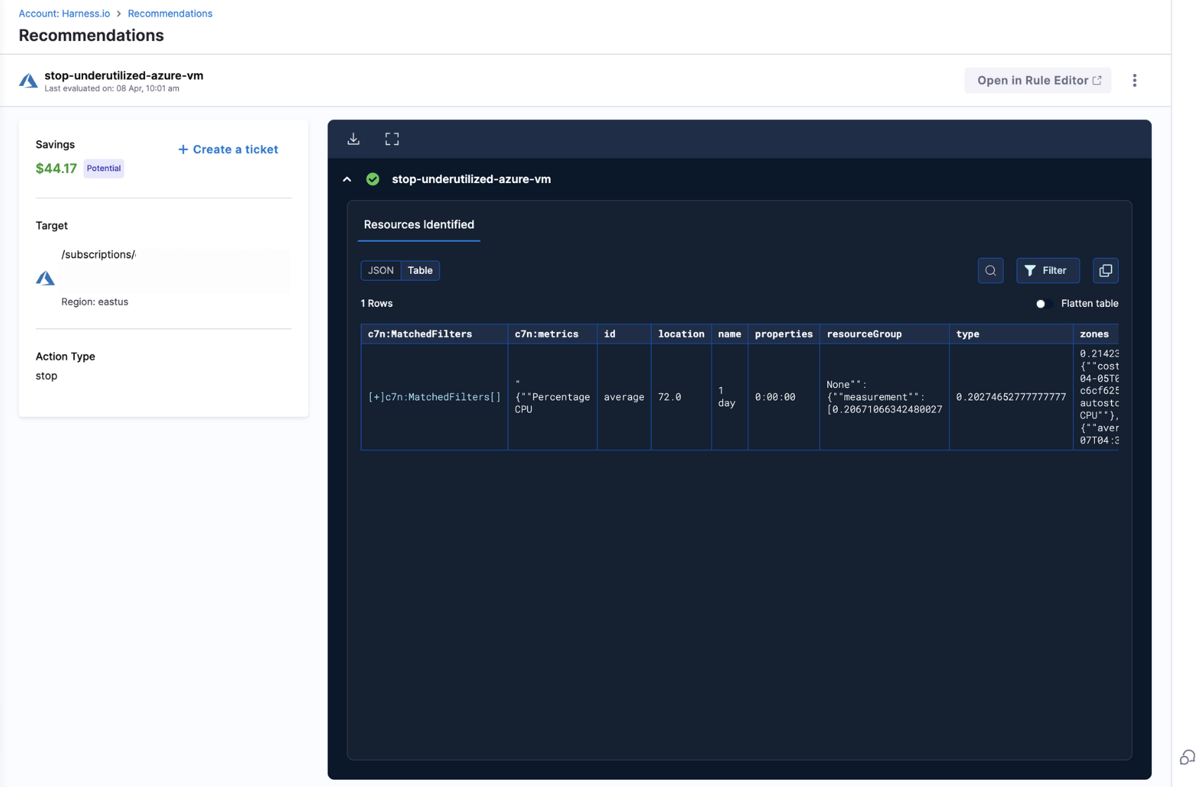Savings will be calculated for rules that are created and resources are being utilized. Rules created with valid resources will display savings numbers as long as the resource is valid and cost data is available in the Cloud Usage Report (CUR). Resources that are onboarded in "Down" state and not used after rule creation will not show any savings, as the details of such resources will be completely missing in the CUR.