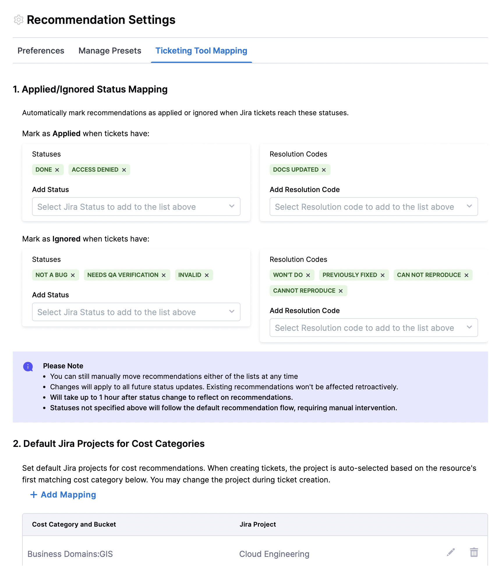 Enhanced Recommendation Management: We’ve added support for temporarily ignoring recommendations. Users can now ignore a recommendation for 7, 15, or 30 days, or ignore it permanently. Once the selected duration expires, the recommendation will automatically move back to the Open tab on the Recommendations page. [CCM-27645]
